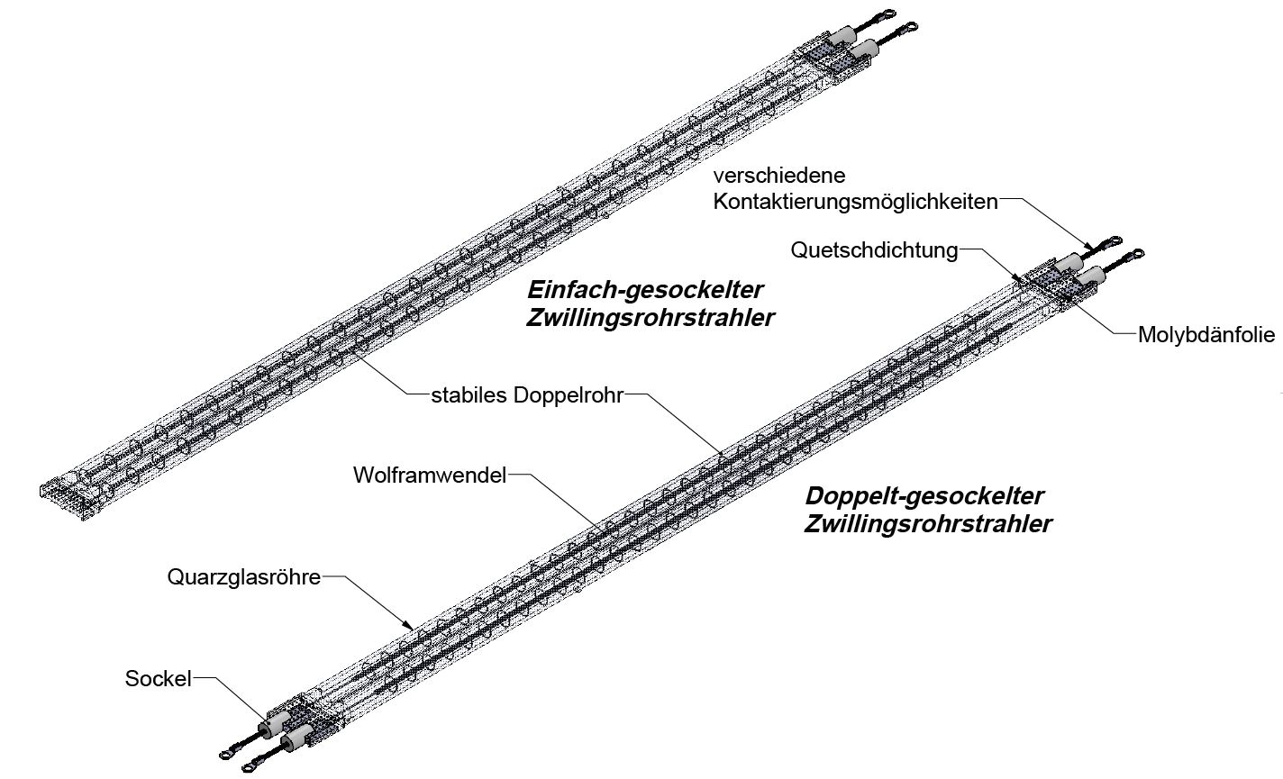 Raloduo Infrarot-Strahler von Radium TECH sind innovative Zwillingsrohrstrahler für verschiedene industrielle Anwendungen. Besonderheiten sind die robuste Bauweise und extreme Vielseitigkeit. Durch eine exakt auf den Kundenbedarf abgestimmte Leistung und ein wählbares Strahlungsspektrum kann sowohl gleichmäßiges Anwärmen als auch gezieltes Erhitzen bestimmter Komponenten und Materialien erreicht werden. Die Strahler sind somit eine optimale Lösung für anspruchsvolle Fertigungsprozesse.